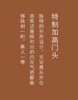 | 秉承中國“藏風(fēng)聚!钡膫鹘y(tǒng)理念,研發(fā)出特殊的設(shè)計工藝,無需更改門洞尺寸,加高門框處理,添財納吉祥、五福入豪門 |